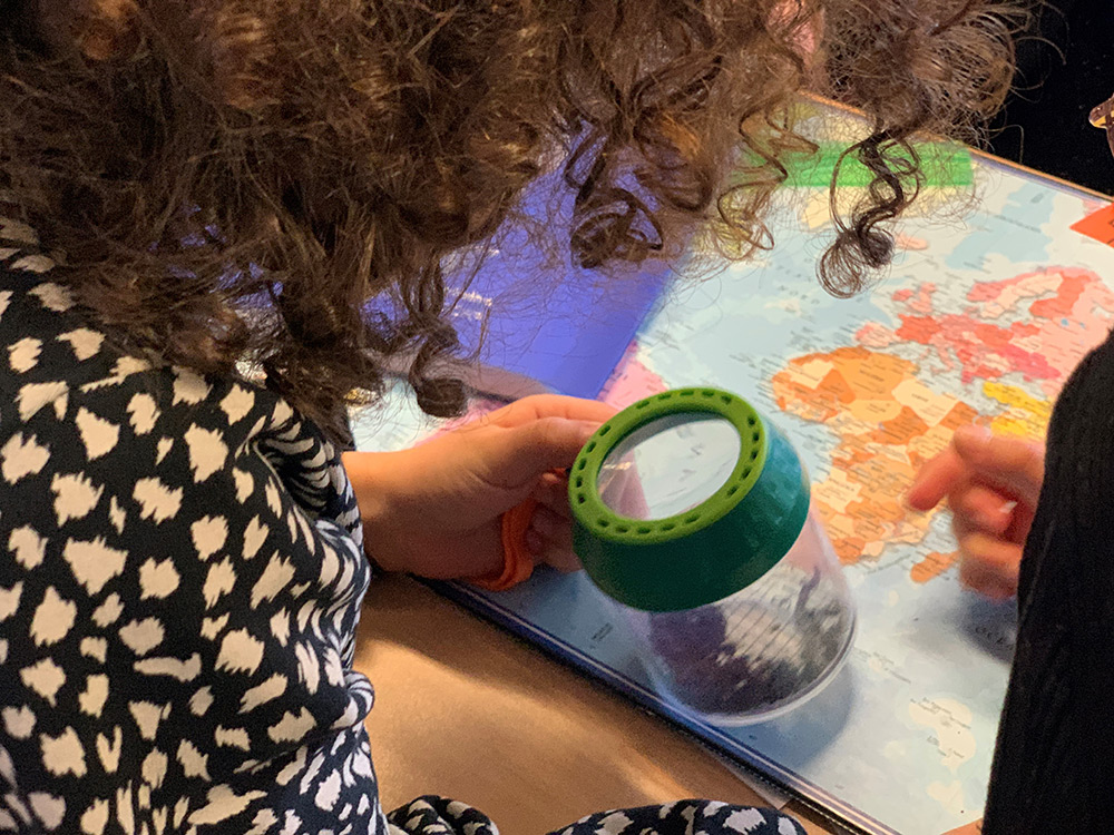 Mais qu’est-ce que le compostage et à quoi sert-il ? Dès le CP, les enfants reconstituent plutôt bien les deux grands types de déchets organiques : ceux qui proviennent de la cuisine, les déchets humides (épluchures, marc de café etc.) et ceux du jardin, les déchets secs (feuilles mortes, brindilles etc.). Stessie explique ensuite qu’une vie se créée dans les déchets et déclenche leur décomposition. Les apprentis composteurs observent avec amusement et intérêt les petites bêtes à travers des boites équipées de loupe. Les plus téméraires y mettront les mains. « C’est la nature » conclut Stessie. Les animations se terminent par des jeux pour permettre aux enfants de mettre en pratique leurs acquis.