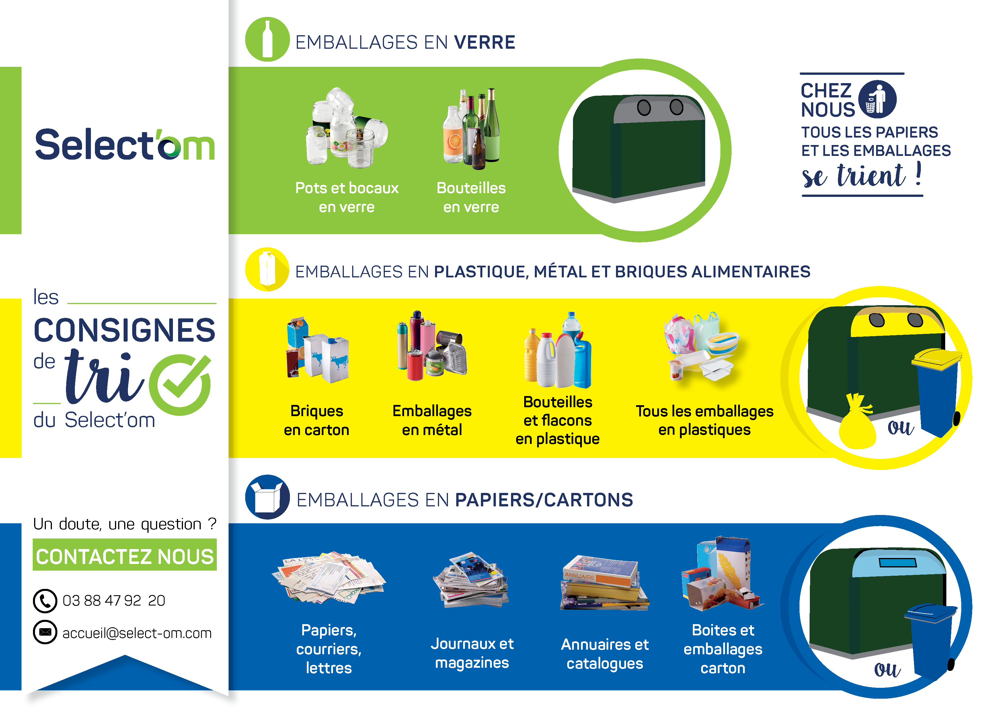 Ils sont à déposer dans le conteneur bleu sur un des points de collecte du Select’om ou dans le bac bleu de la collecte en porte à porte.